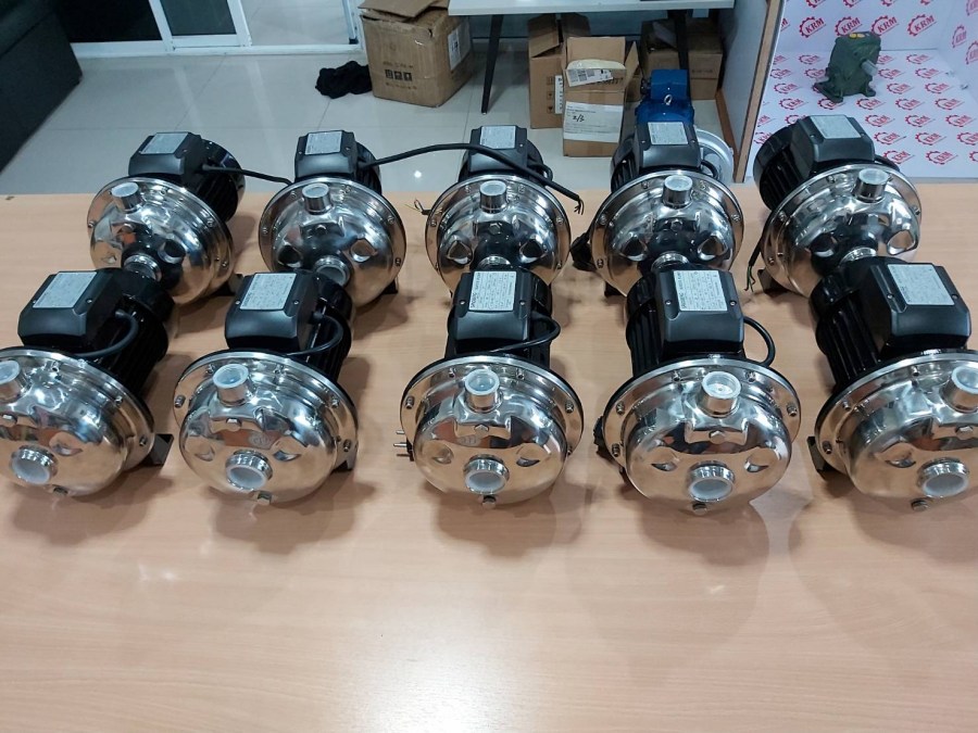 “SANDBERG” brand stainless steel centrifugal pump, model: CPS750, size 1 HP, for supplying water to use or into homes. This Centrifugal water pump made from stainless steel. Impeller made from stainless steel, standard quality.